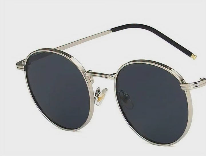 These sunglasses feature a classic round design with a sleek metal frame that adds a touch of elegance and sophistication. The dark tinted lenses provide a bold, stylish look while helping reduce glare and protect your eyes from sunlight. Adjustable clear nose pads ensure a comfortable, secure fit, and the slim temples with black tips offer both durability and all-day comfort. Perfect for casual outings or statement looks, these sunglasses blend vintage charm with modern style. 😎